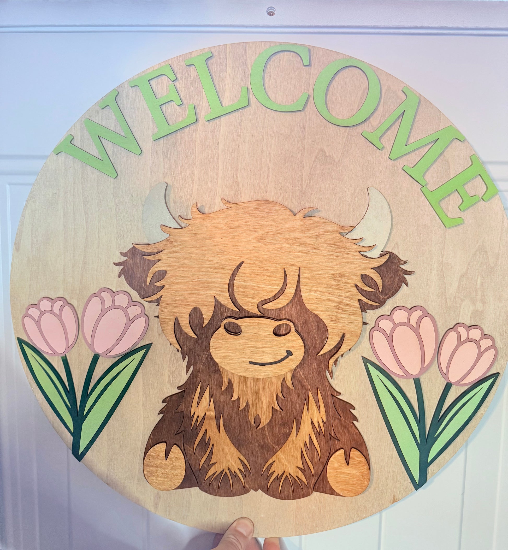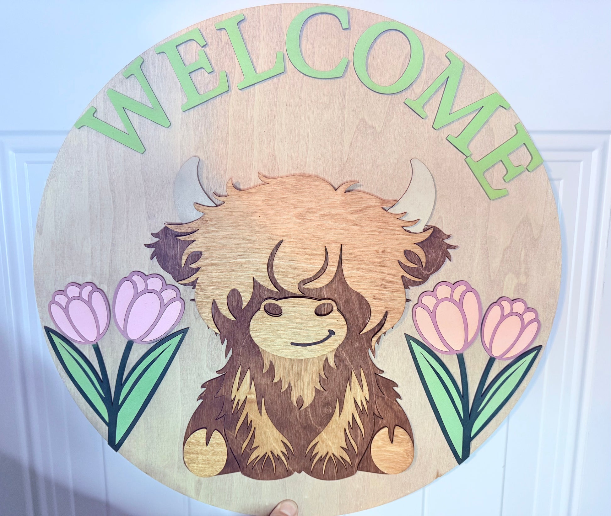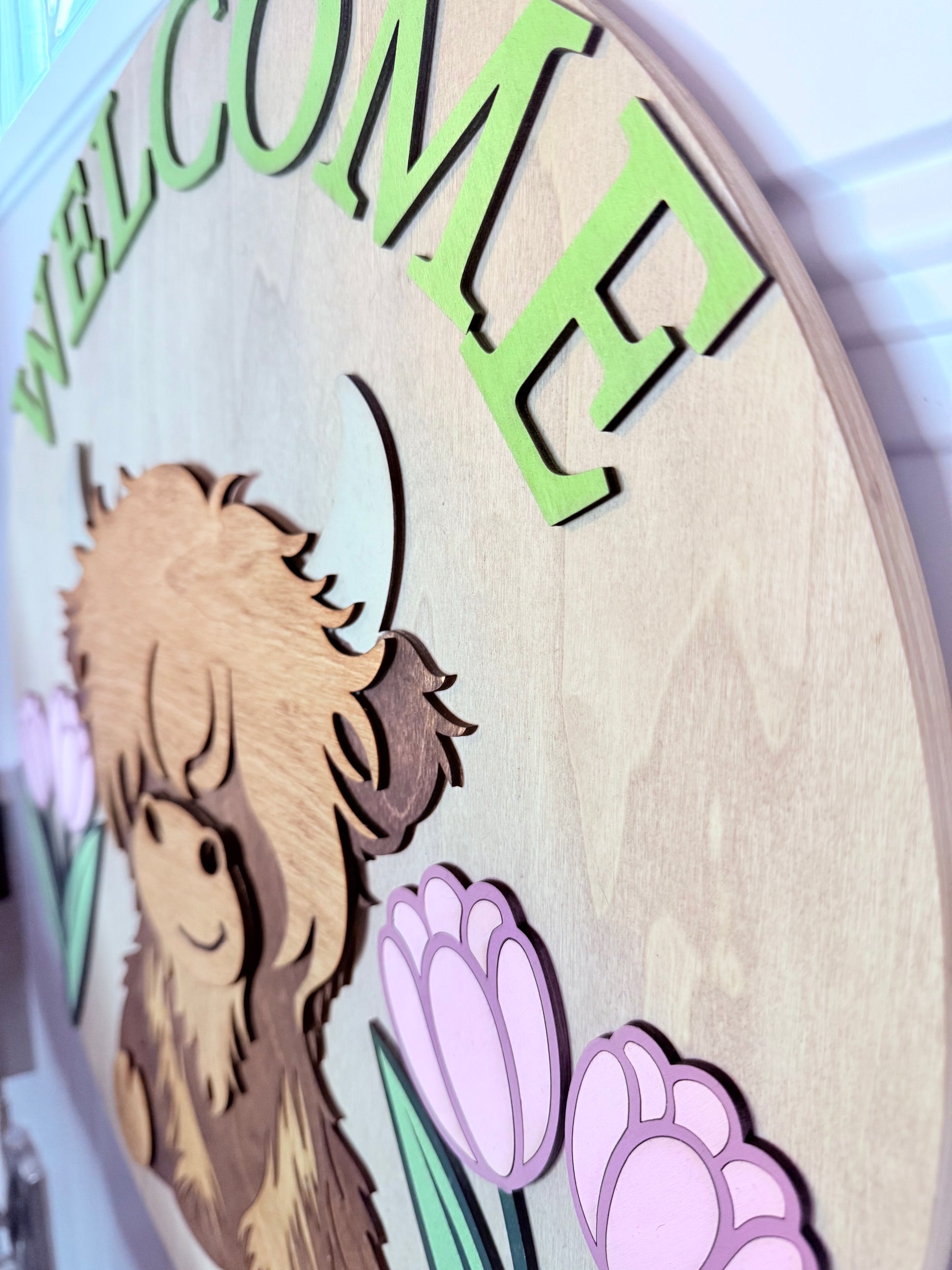 Highland Cow Welcome Door Sign, Highland Cow Spring Door Hanger, Spring Door Hanger, Highland Cow Wall Sign, Welcome sign